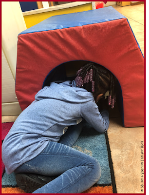 Idea 1: Mostrar la carita triste al hacer la pregunta: “¿Dónde está Spot?” Luego cantar este cantito que compuse para el